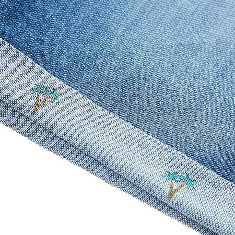 กางเกงยีนส์ขาสั้นสำหรับผู้ชายลายพื้นสีพื้นเป็นมิตรกับสิ่งแวดล้อมดีไซน์ใหม่ล่าสุด