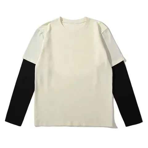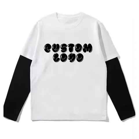 เสื้อยืดแขนยาวสำหรับผู้ชายเสื้อยืดพิมพ์ลายดิจิตอลนุ่มใส่สบายสองชั้น