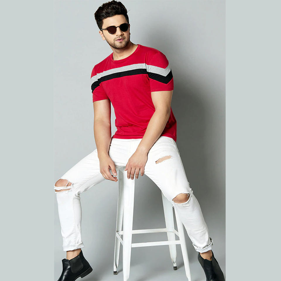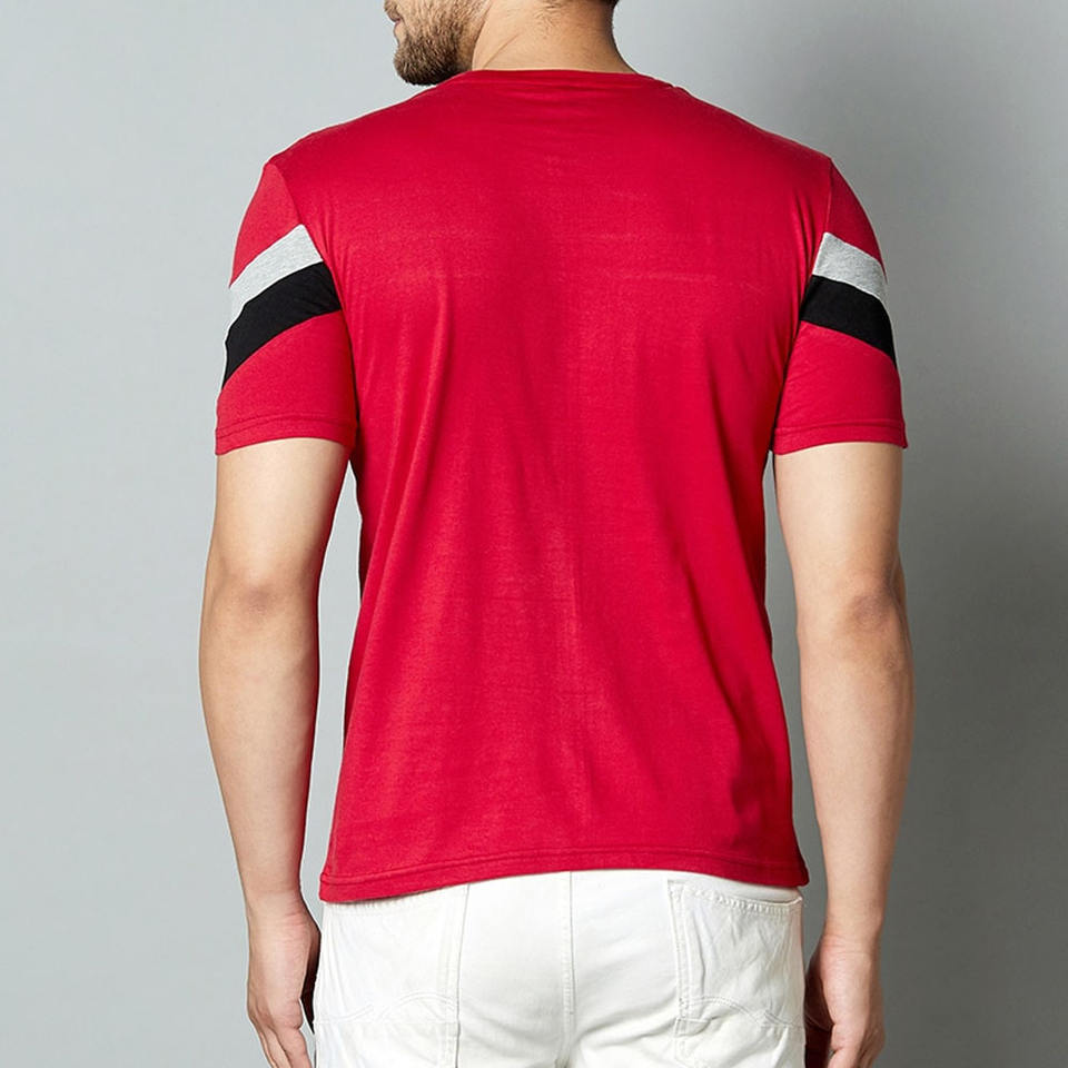 ที่ขายดีที่สุดผู้ชายเสื้อยืดสีแดงแขนสั้นทำในประเทศปากีสถานด้วยผ้าฝ้ายโพลีเอสเตอร์ที่มีการออกแบบที่กำหนดเองและแบรนด์