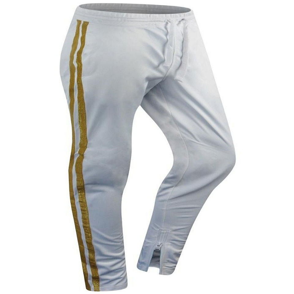 ชุดวอร์มสำหรับผู้ชายชุดวอร์มแขนยาวผ้าโพลีเอสเตอร์มีฮู้ดสีขาวดีไซน์ลายทาง