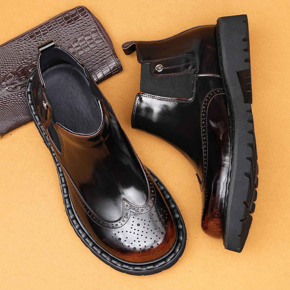 รองเท้าบูททำงานสไตล์อังกฤษหนังแท้ทรงกลางลำตัว ขายดีสำหรับผู้ชาย ทันสมัย อบอุ่น สวมใส่สบาย เหมาะสำหรับใส่ลำลอง