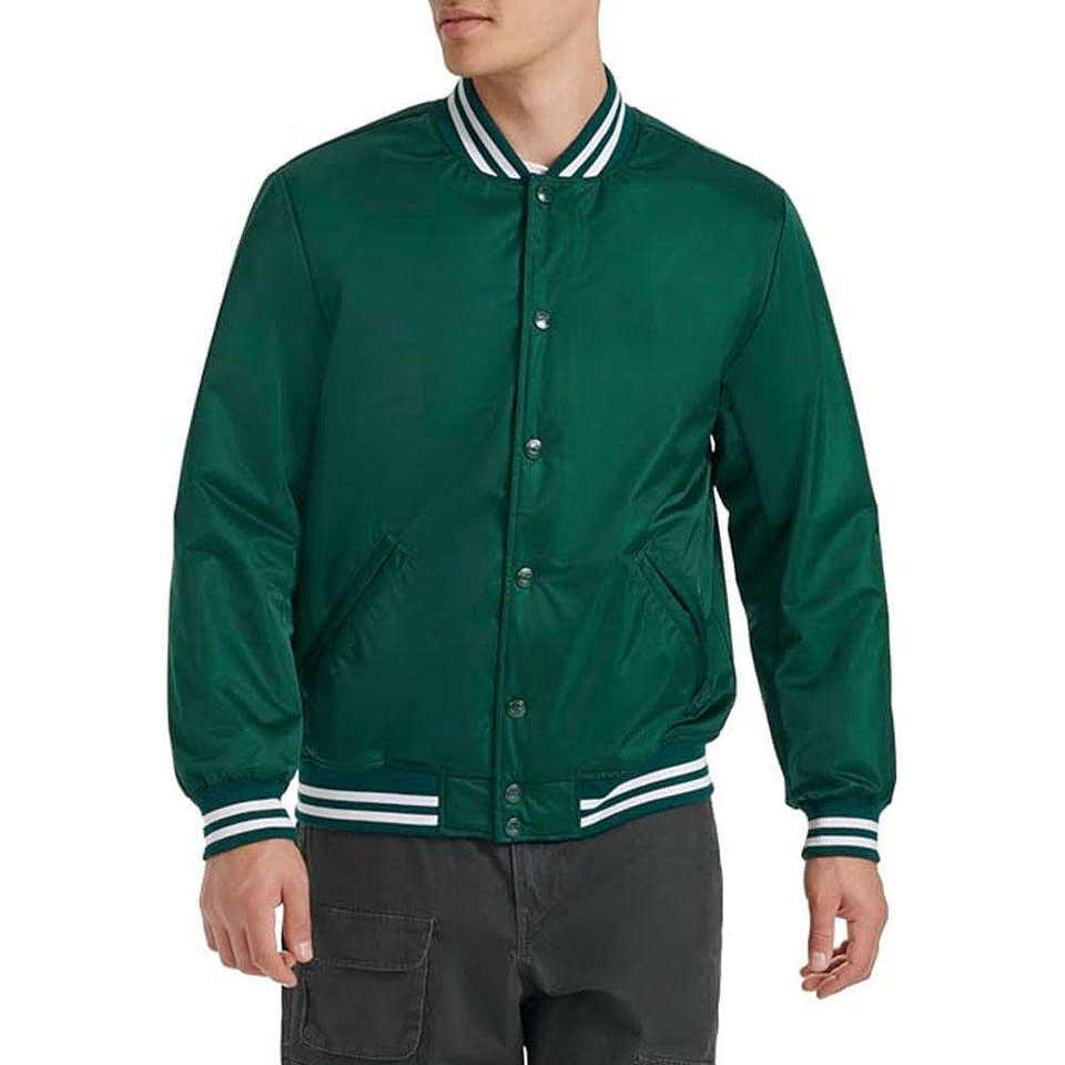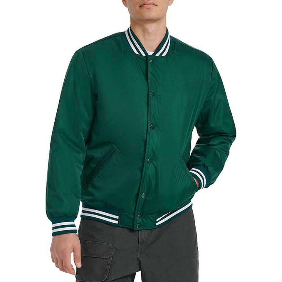 แจ็คเก็ตวาร์ซิตี้ผู้ชายขายดี พิมพ์โลโก้ตามสั่ง ปกเสื้อทันสมัย เสื้อผ้าสำหรับกิจกรรมกลางแจ้ง แจ็คเก็ตเบสบอลสไตล์วิทยาลัยสำหรับผู้ชาย