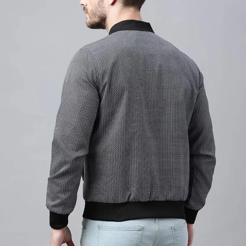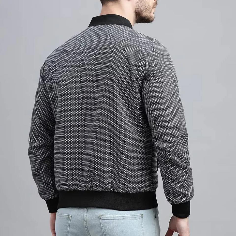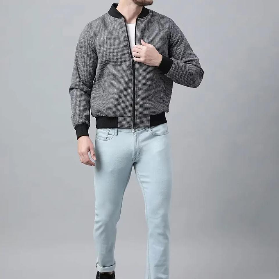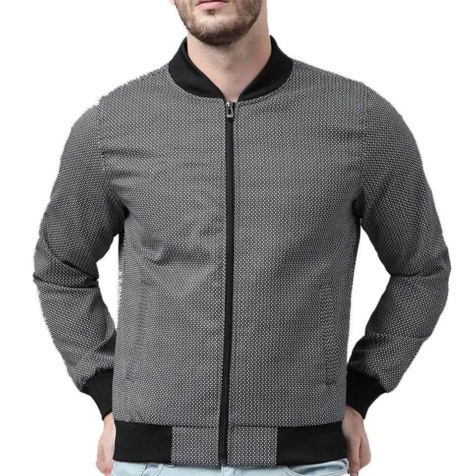 แจ็กเก็ตบอมเบอร์ผ้าฝ้ายแขนยาวสำหรับผู้ชายทรงพอดีตัวปกติดีไซน์มหาวิทยาลัยเสื้อคอตั้งกันน้ำเป็นมิตรกับสิ่งแวดล้อม