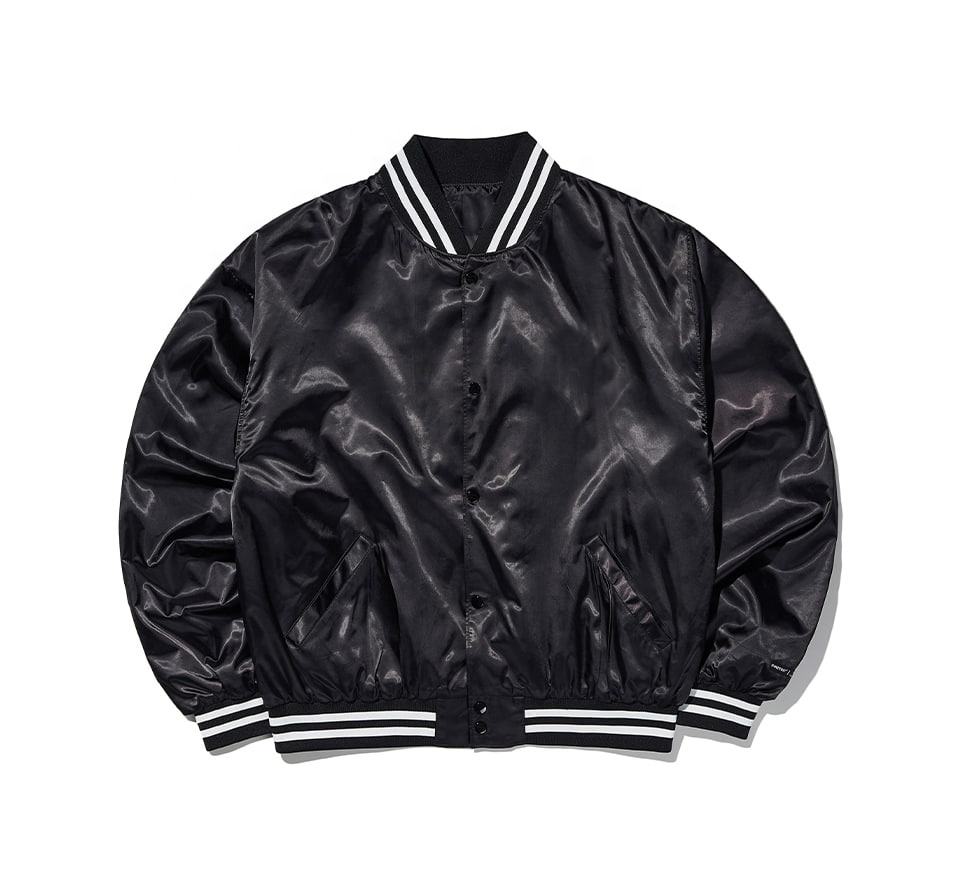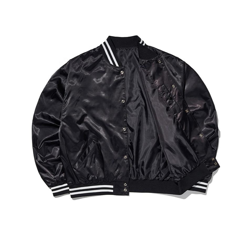 แจ็คเก็ตเบสบอลผ้าซาตินสไตล์ไฮสตรีทสำหรับผู้ชายขายดีประจำฤดูหนาว แจ็คเก็ตแบบกลับด้านได้ กันลม