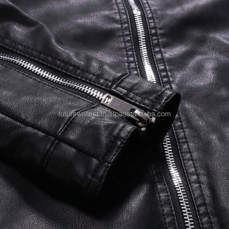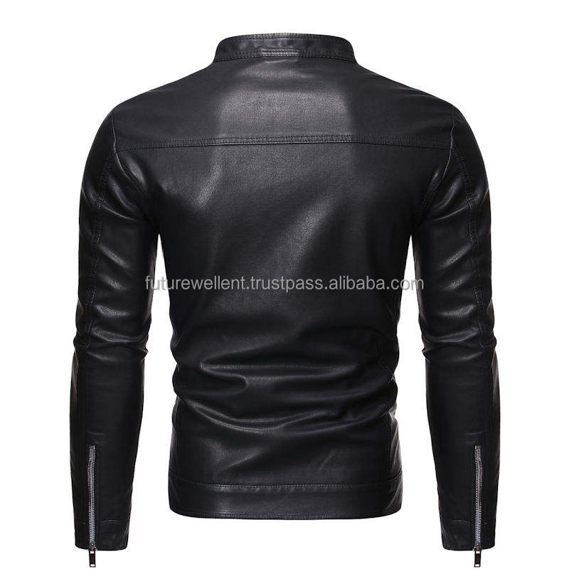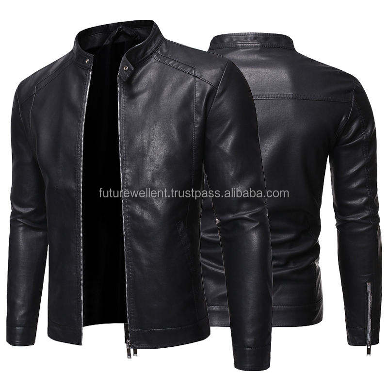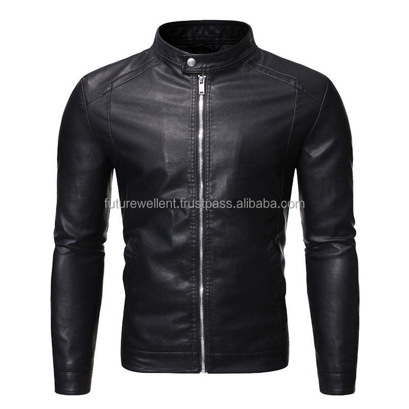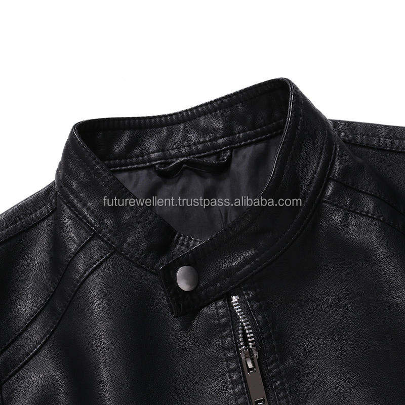 แจ็กเก็ตหนังสำหรับผู้ชายกันน้ำมีคอตั้งโลโก้ด้านหน้า