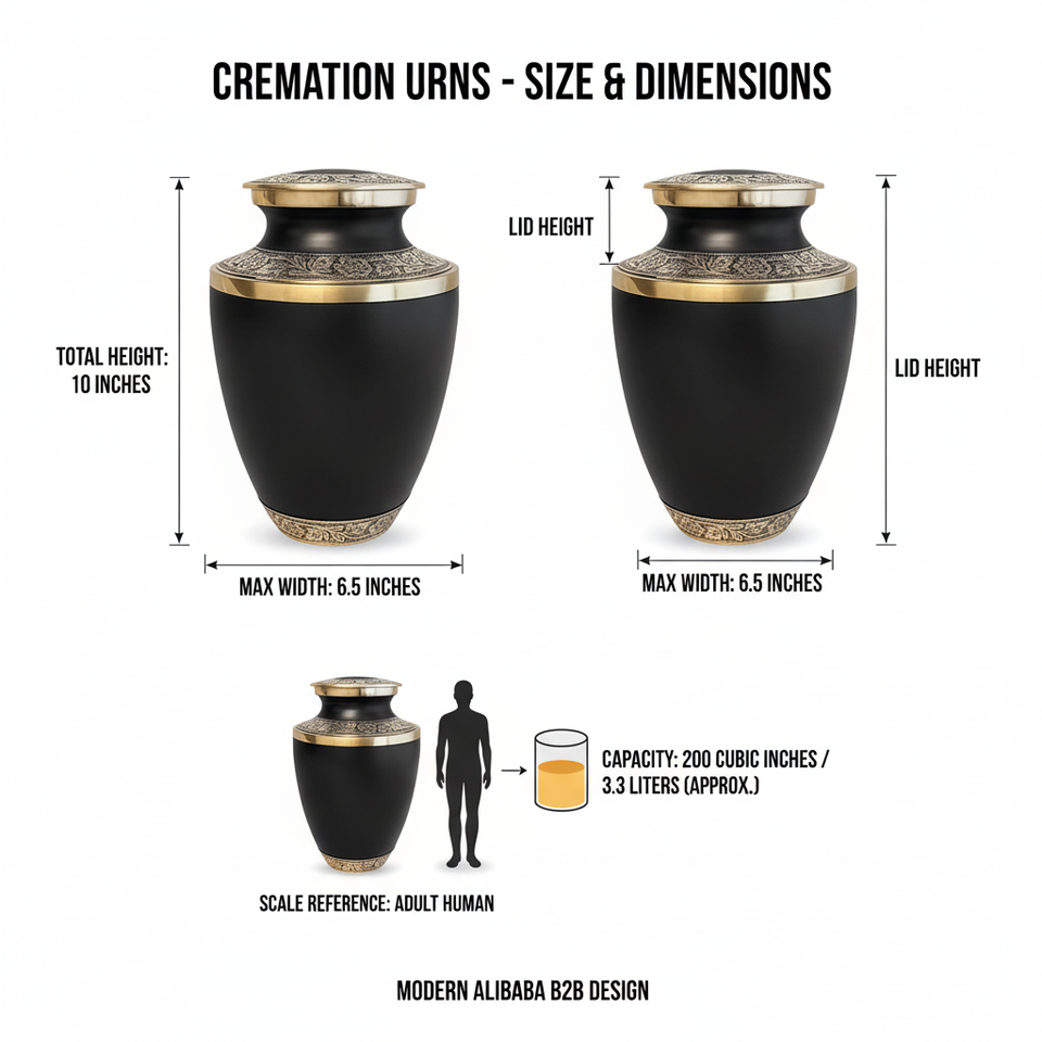 โกศบรรจุอัฐิผู้ใหญ่ ดีไซน์ยุโรปสมัยใหม่ สีดำด้าน ความจุ 200 คิวบิกนิ้ว เป็นมิตรกับสิ่งแวดล้อม สำหรับผู้ชาย