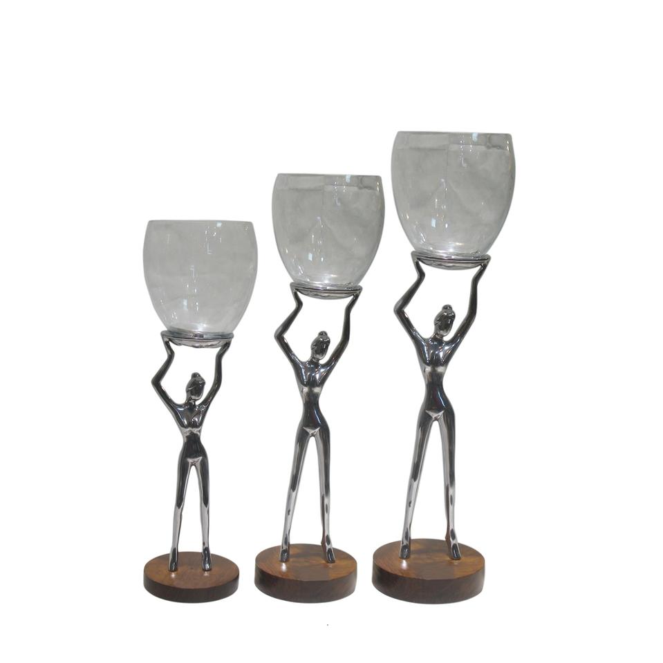 เชิงเทียนโลหะฐานไม้สำหรับตกแต่งบ้านและวางกลางเทียนออกแบบมาแรงในโอกาสพิเศษแสงเทียน