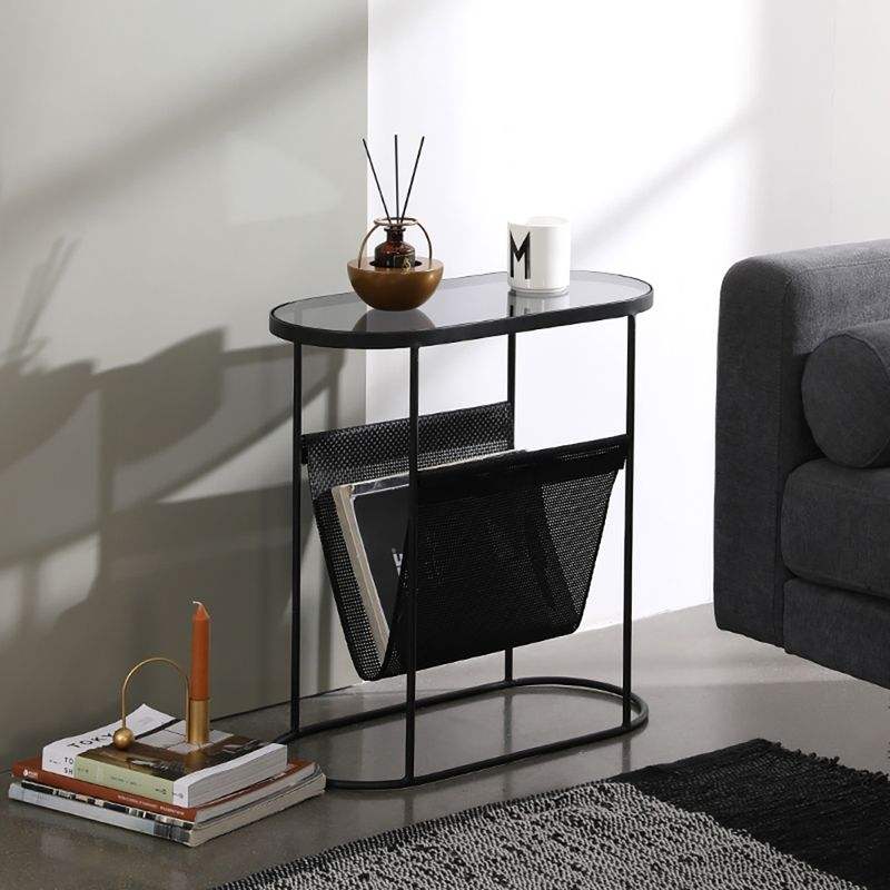 โต๊ะข้างโลหะขายดีที่สุด เฟอร์นิเจอร์สำนักงาน ท็อปกระจก พร้อมชั้นวางหนังสือพิมพ์ ตู้วางของข้างโซฟา สำหรับห้องนั่งเล่น ห้องรับแขก