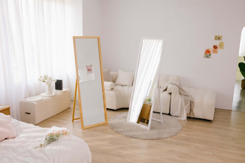 กระจกตั้งพื้นดีไซน์ทันสมัยขายดี คุณภาพสูง พร้อมขาตั้ง วัสดุไม้ปาร์ติเคิลบอร์ด รุ่น MR-12 ผลิตในไต้หวัน