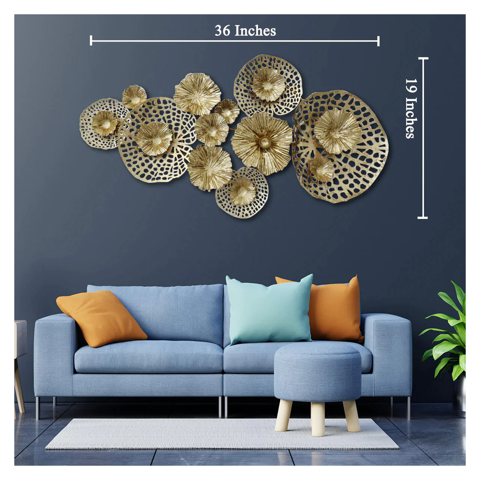 ศิลปะติดผนังโลหะสีทองแบบทันสมัย3ชิ้นลายดอกไม้สีน้ำตกแต่งบ้านสำหรับห้องนั่งเล่นพร้อมฐานผ้าใบ