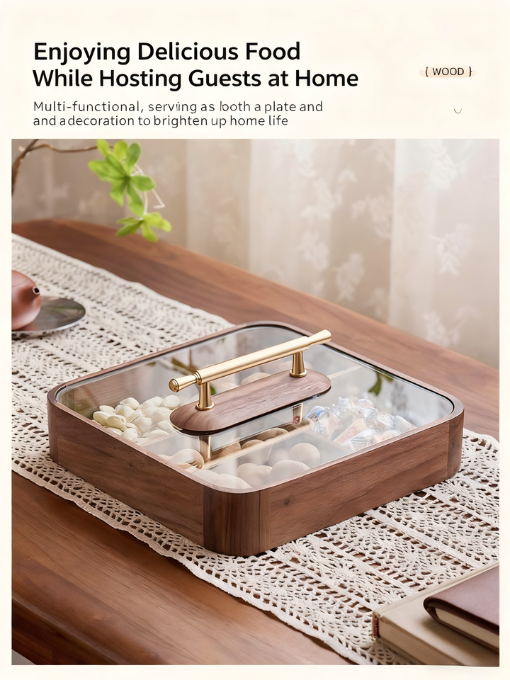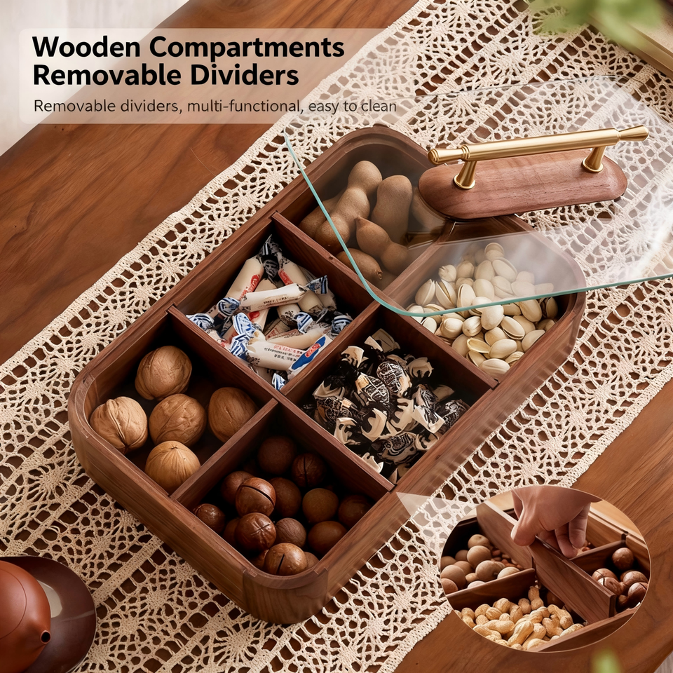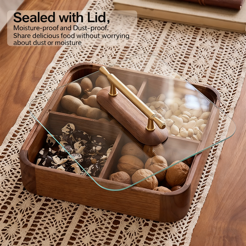 Best Selling Modern Luxury Black Walnut Wood Compartment Dried Fruit Storage Box for Living Room Desktop