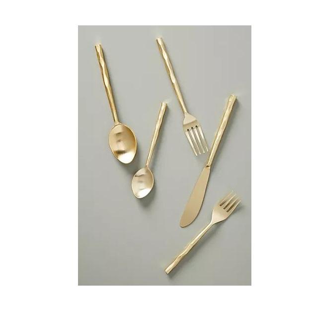 ชุดช้อนส้อมมีดโลหะชุบทองชุดเครื่องใช้บนโต๊ะอาหารดีไซน์หรูหราทันสมัย