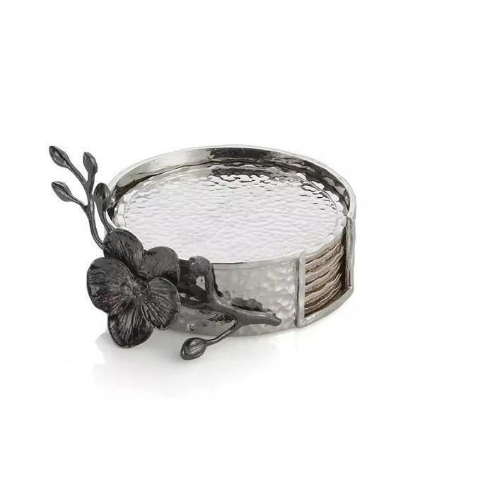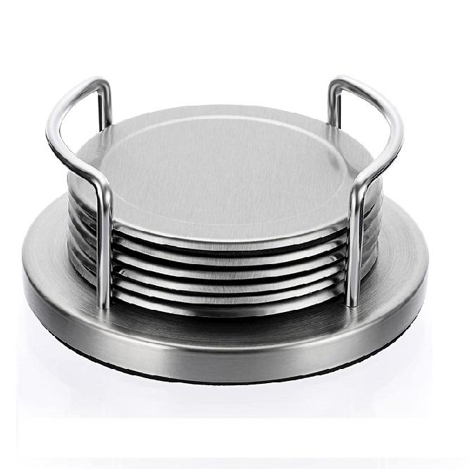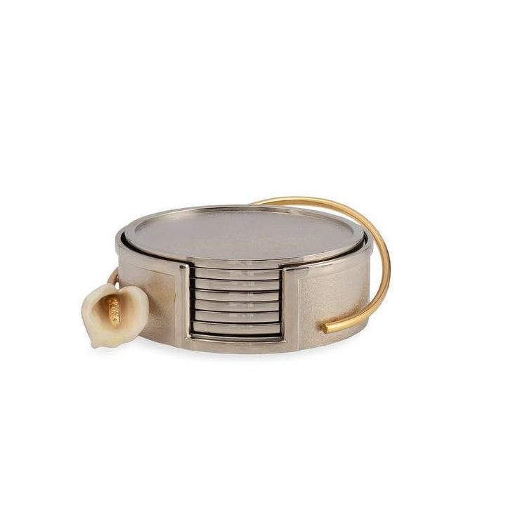 ชุดที่รองแก้วโลหะลายดอกลิลลี่ทรงกลมทันสมัยพร้อมที่วางของตกแต่งห้องครัวในบ้านและบนโต๊ะ
