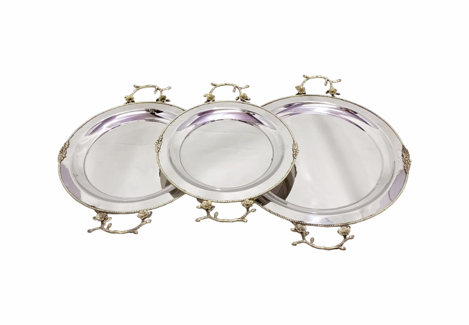 ถาดเสิร์ฟทรงกลมทำมือสไตล์โมเดิร์นสินค้าใหม่ทาสีคริสต์มาสจากอินเดียสำหรับตกแต่งบ้านและจัดเก็บ