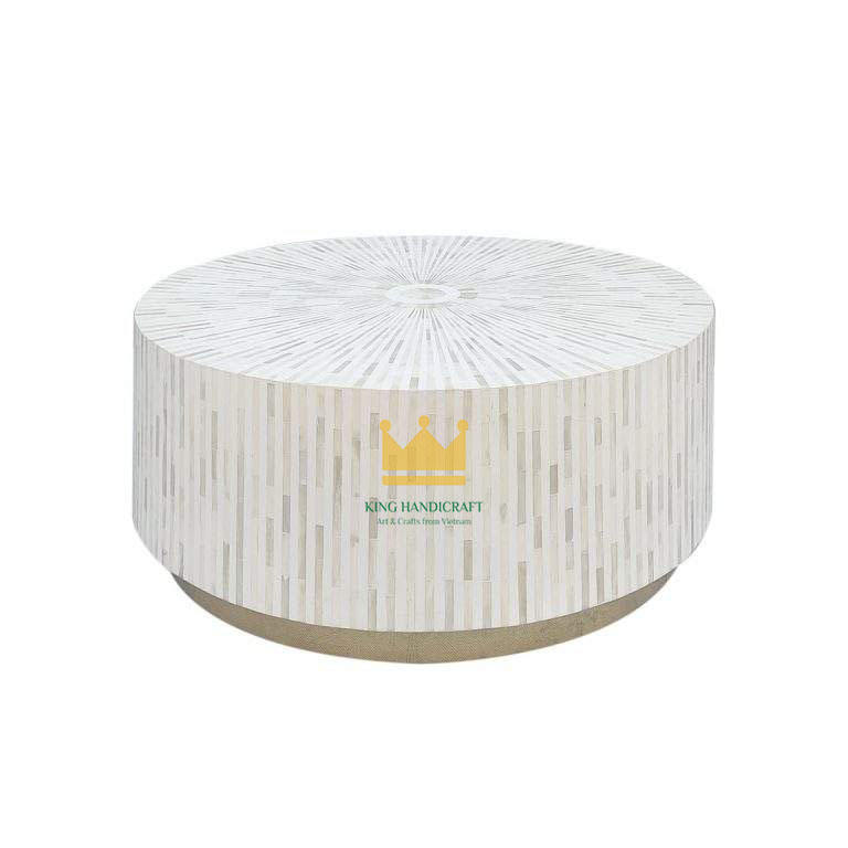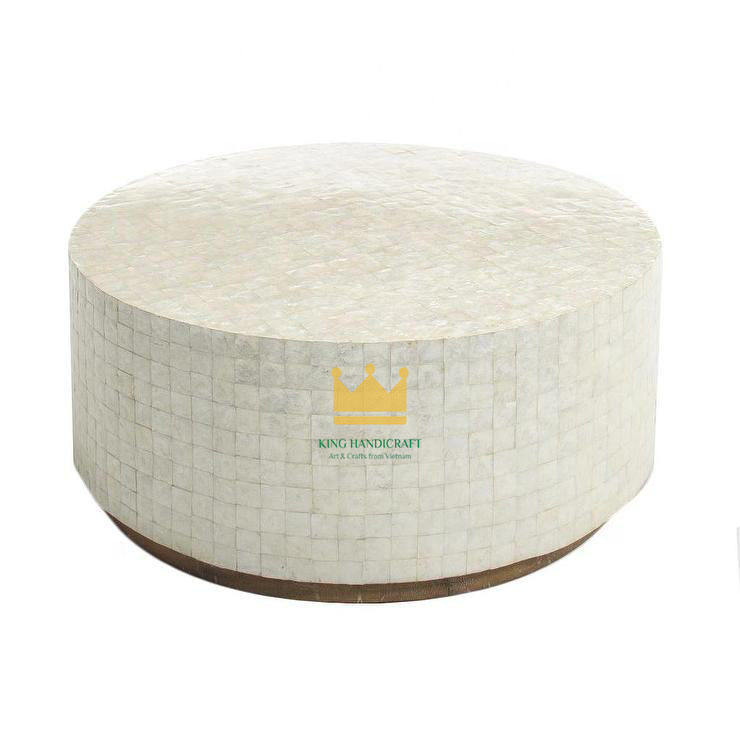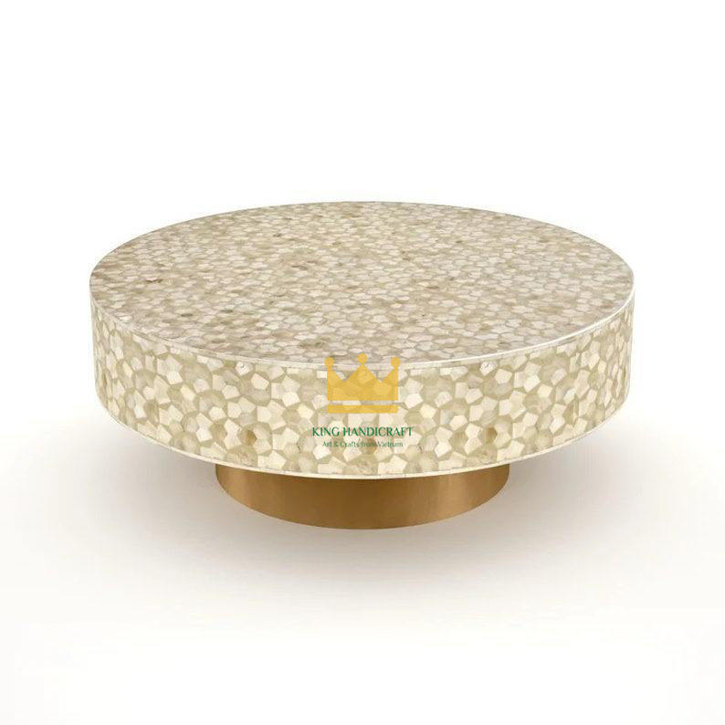 โต๊ะกาแฟทรงกลมโมเดิร์นขายดี พร้อมท็อปหินมุกแท้ ผลิตในเวียดนาม เฟอร์นิเจอร์ตกแต่งห้องนั่งเล่น