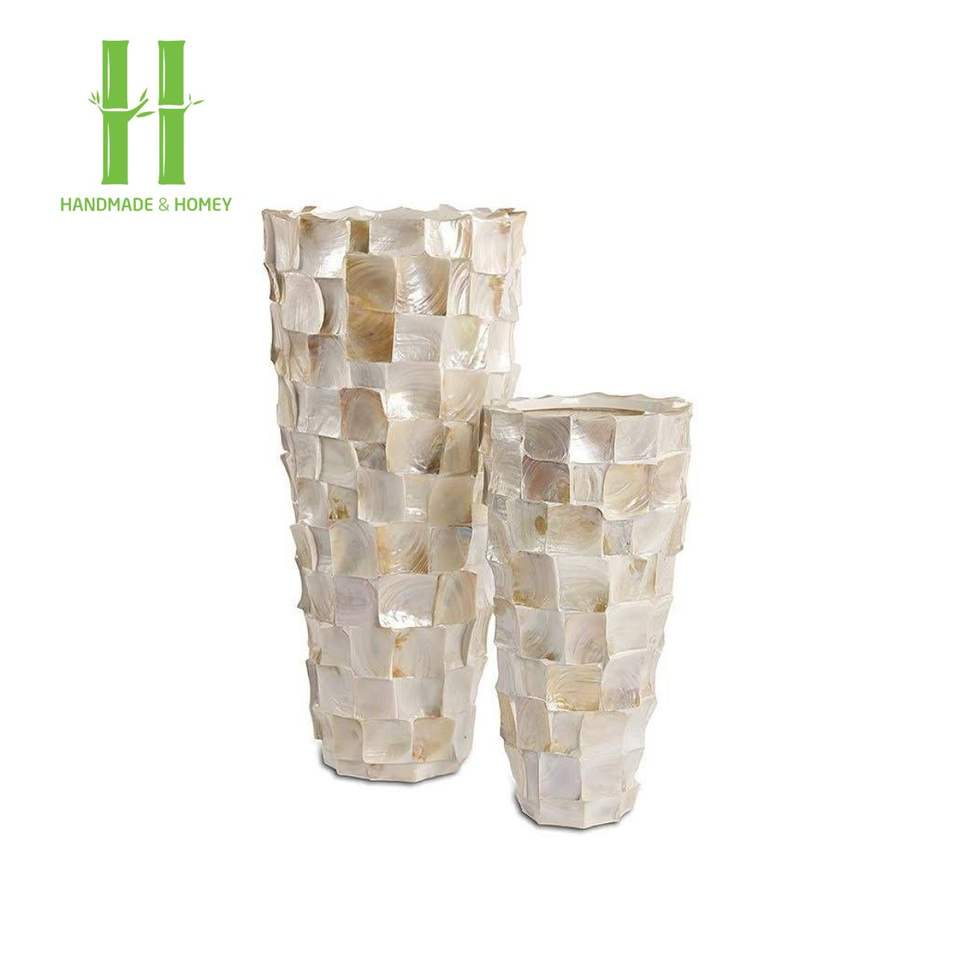 ที่ขายดีที่สุดโมเดิร์นโต๊ะแจกันตกแต่ง Handmade Mop แผ่นแจกันหวาย Urn แจกันกระถางดอกไม้ OEM ออกแบบและแพคเกจ