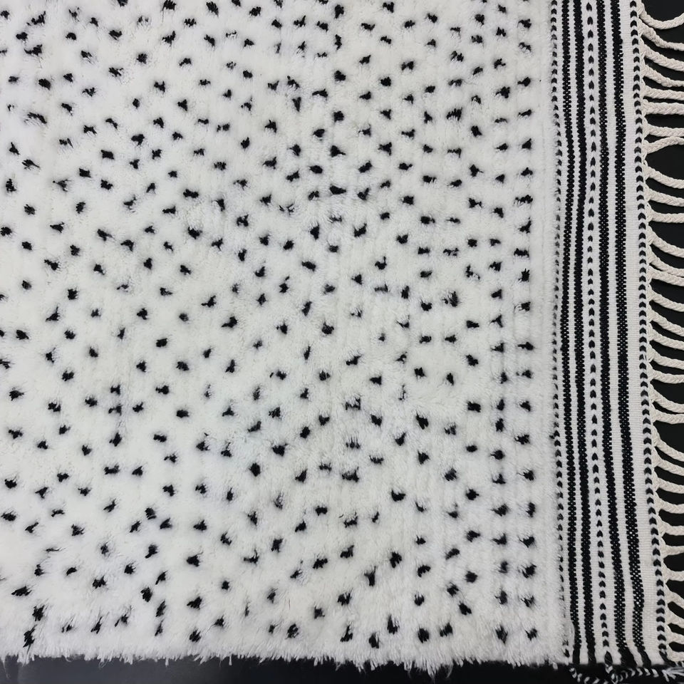 พรมลายจุดเบอเบอร์ชุดผ้าฝ้ายสีขาวปรับแต่งลายจุดทำด้วยมือสไตล์โมร็อกโก
