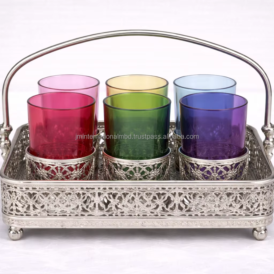 ชุดน้ำชาโมร็อกโกขายดี พร้อมที่วางแก้วอะลูมิเนียมอัลลอยด์ 6 แก้ว (โลหะ)