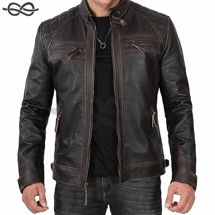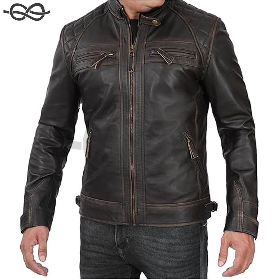 Best Selling Motorcycle Leather Jacket for Men Quilted Cafe Racer Stand Collar Breathable for Stylish Riders
