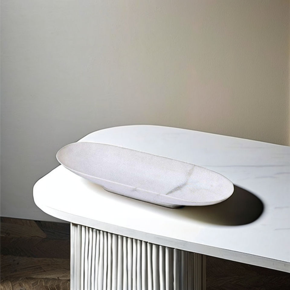 ชามหินอ่อนลายเรือหินอ่อนสีขาวธรรมชาติสำหรับตกแต่งทำด้วยมือแบบพรีเมี่ยม