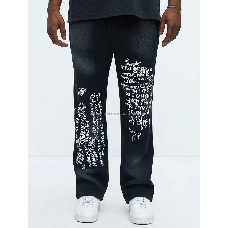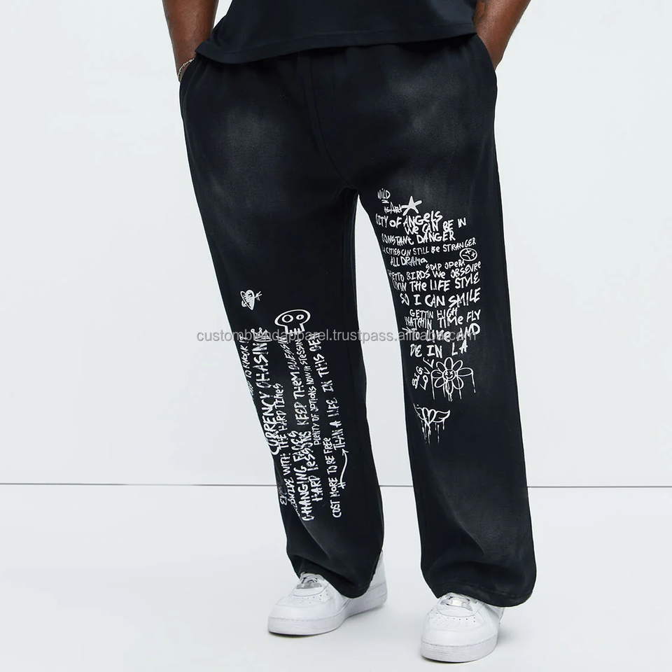Best Selling New Arrival Mens Screen Printed Sunfaded Wide Leg Mid Waist Straight Fit Custom Designed Eco-Friendly Sweatpants