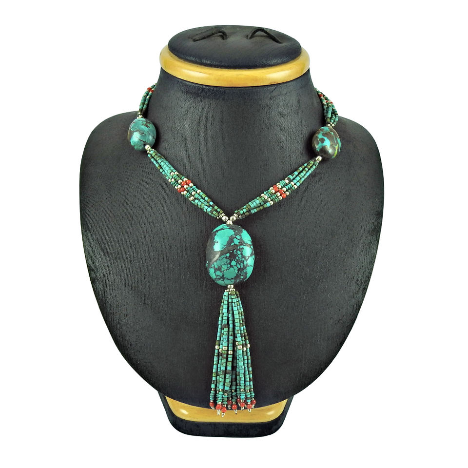 Best Selling New Design 925 Sterling Silver Natural Coral Turquoise Gemstone Ethnic Necklace Handmade Jewelry Wholesale Supplier