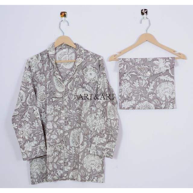 ชุดนอนผ้าฝ้ายลายดอกไม้ดีไซน์ใหม่ขายดีสำหรับฤดูร้อนสำหรับผู้หญิง มีหลายขนาดให้เลือกจากอินเดีย