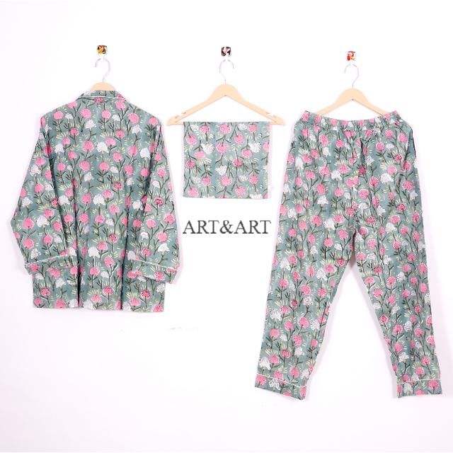 ชุดนอนผ้าฝ้ายลายดอกไม้ดีไซน์ใหม่ขายดีสำหรับฤดูร้อนสำหรับผู้หญิง มีหลายขนาดให้เลือกจากอินเดีย