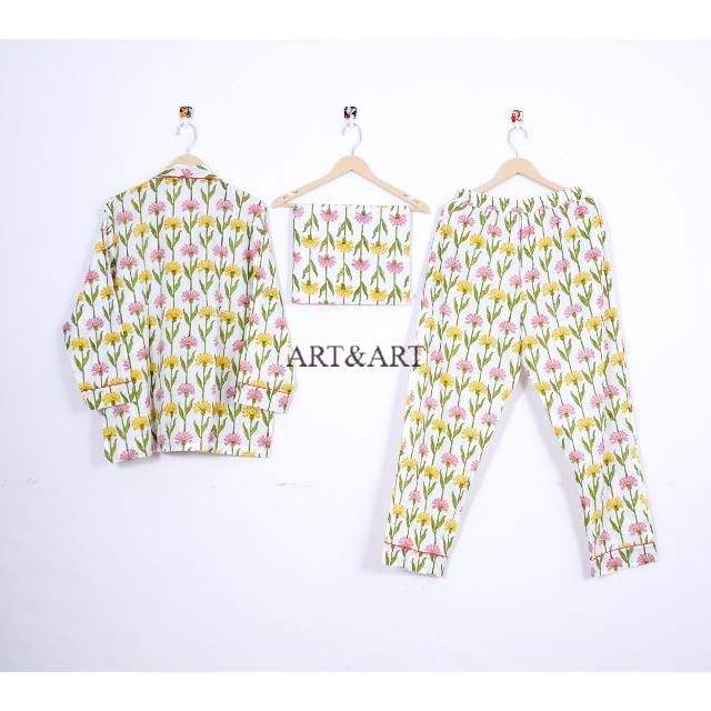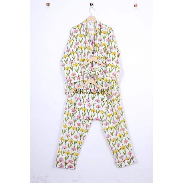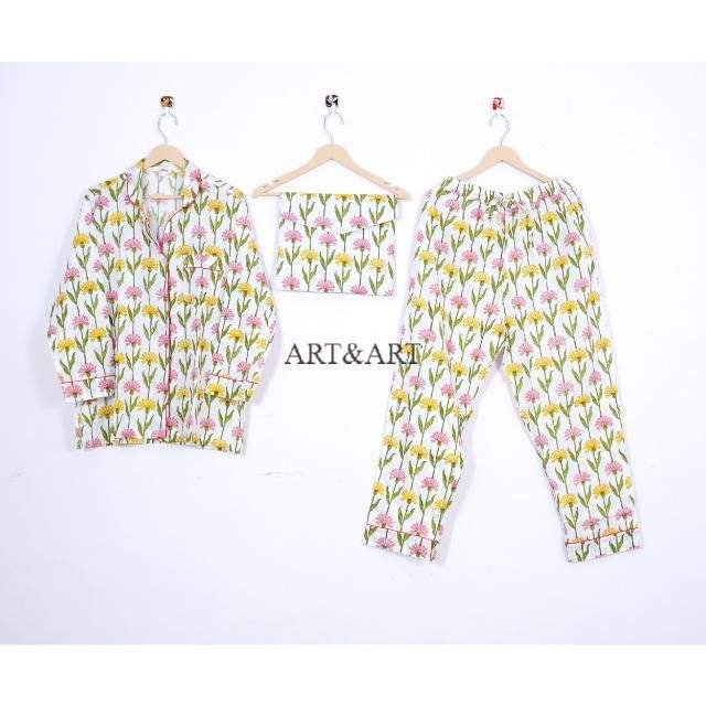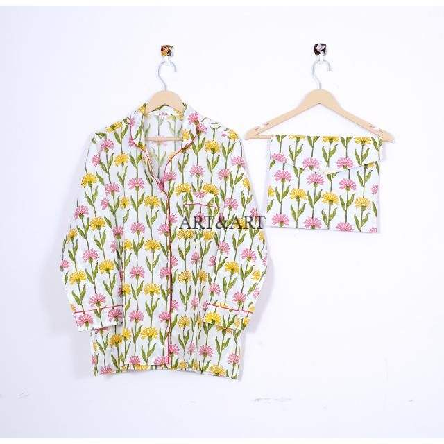ชุดนอนผ้าฝ้ายลายดอกไม้ดีไซน์ใหม่ขายดีสำหรับฤดูร้อนสำหรับผู้หญิง มีหลายขนาดให้เลือกจากอินเดีย