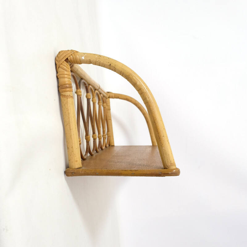 ชั้นวางของหวายติดผนังรุ่นใหม่ชั้นวางของตกแต่งในร่มดีไซน์พื้นฐานทำจากไม้และหวาย KT07เวียดนาม