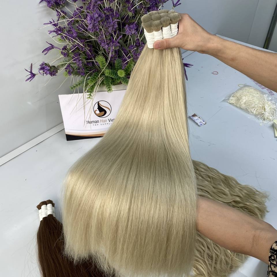 ผลิตภัณฑ์ใหม่ที่ขายดีที่สุดที่มีจําหน่ายหนังกําพร้ามนุษย์เวียดนามดิบชิดชิดการต่อผมจํานวนมากบริสุทธิ์ตามธรรมชาติ