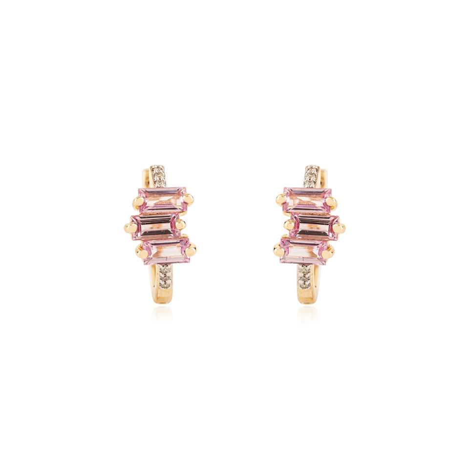 Best Selling Newly Design Minimalist Pink Sapphire & Diamond K14 Yellow Gold Hoop Earrings For Girls Gemstone Wholesale Jewelry