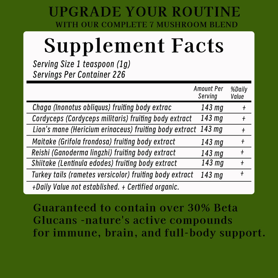 ชากาคอร์ไดเซป, แผงคอสิงโต, ไมตาเกะ, เห็ดหลินจือ, เห็ดชิตาเกะ, หางไก่งวงส่วนผสมหลัก