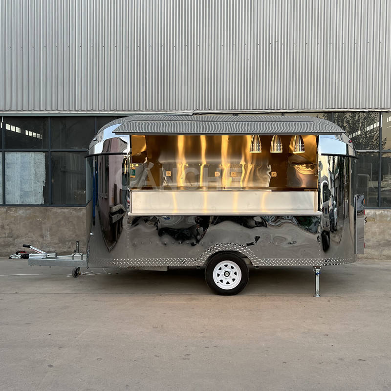 รถพ่วงขายอาหารเคลื่อนที่กลางแจ้งขายดีที่สุด - ยาว 4 เมตร ทำจากสแตนเลสสำหรับการออกแบบ