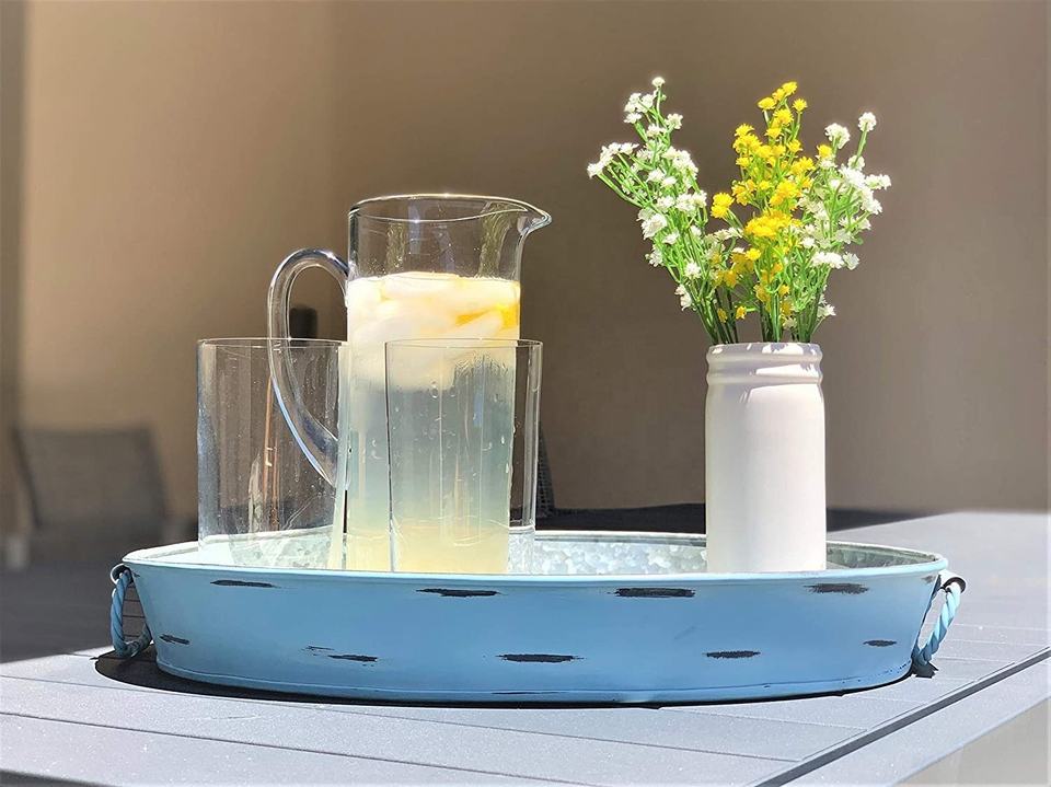 ถาดโลหะเคลือบสีน้ำเงินพิมพ์สำหรับงานแต่งงาน,ถาดเสิร์ฟทรงวงรีสำหรับตกแต่งโต๊ะ