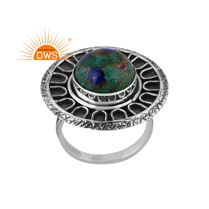 แหวนพลอยอะซูไรต์สีเงินสเตอร์ลิงออกซิไดซ์ผลิตตามแบบ