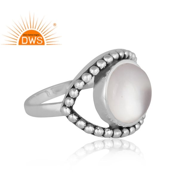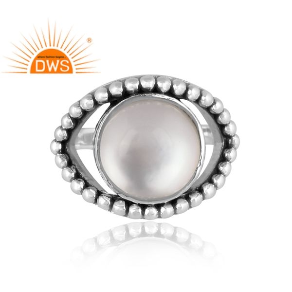 แหวนเพชรธรรมชาติแบบคู่สำหรับแม่ของไข่มุกดีไซน์เป็นวงแหวนเงินออกซิไดซ์