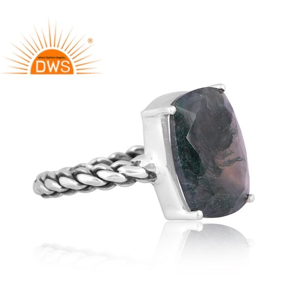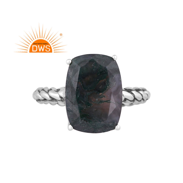 แหวนพลอยมอสอาเกตสีเขียวธรรมชาติสีเงินสเตอร์ลิงออกซิไดซ์ขายดีที่สุดสำหรับเป็นของขวัญสำหรับผู้หญิง