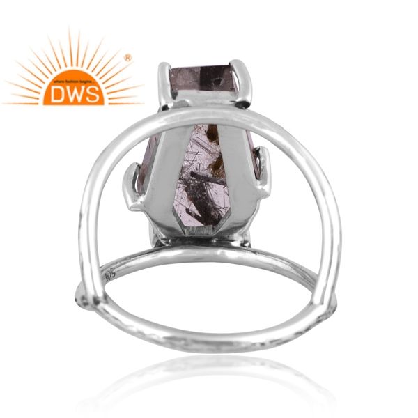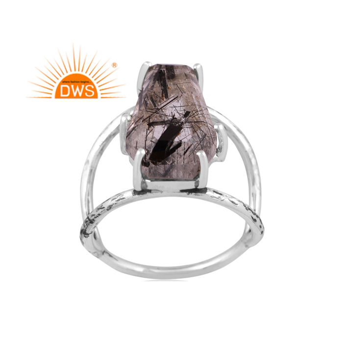 Best Selling Oxidized Sterling Silver Natural Black Rutile Gemstone Coffin Design Ring Custom Jewelry Manufacturer