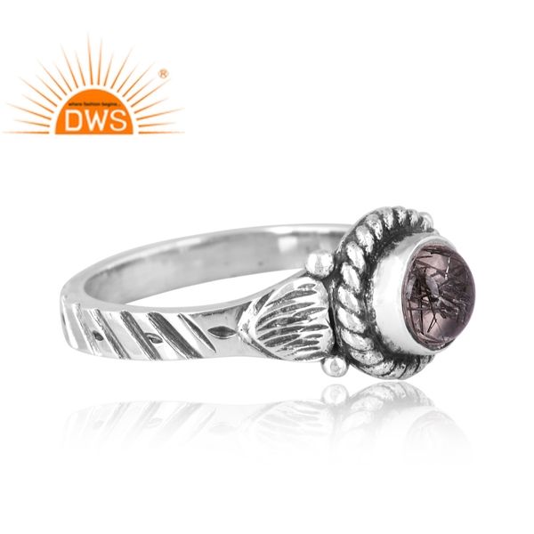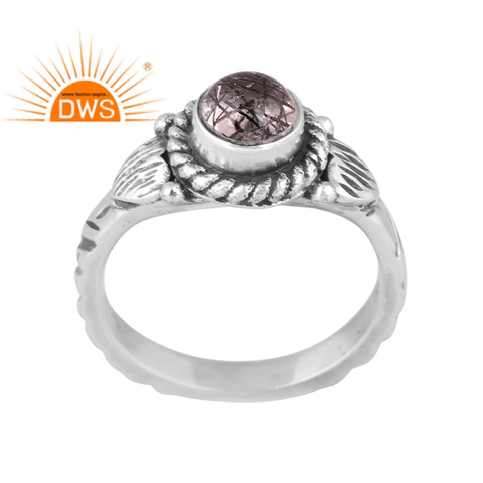 แหวนอัญมณีสังเคราะห์สีดำธรรมชาติสีเงินสเตอร์ลิงออกซิไดซ์