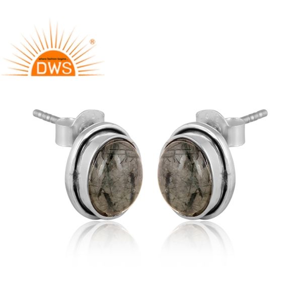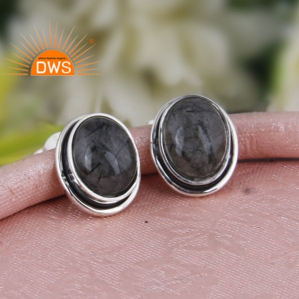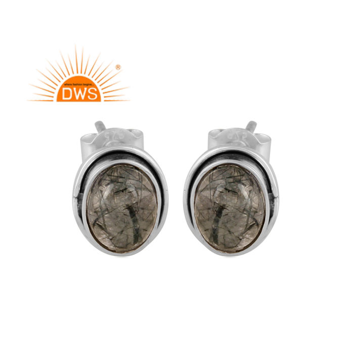 ต่างหูสตั๊ดอัญมณีสีดำธรรมชาติสีเงินแท้ออกซิไดซ์ผลิตตามแบบ