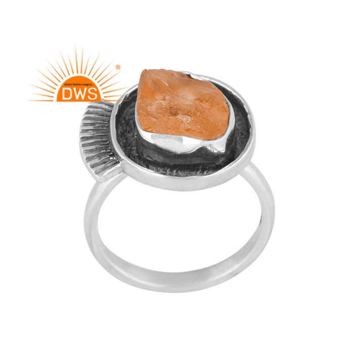 แหวนซิทรีนอัญมณีซิทรินธรรมชาติสีเงินสเตอร์ลิงออกซิไดซ์
