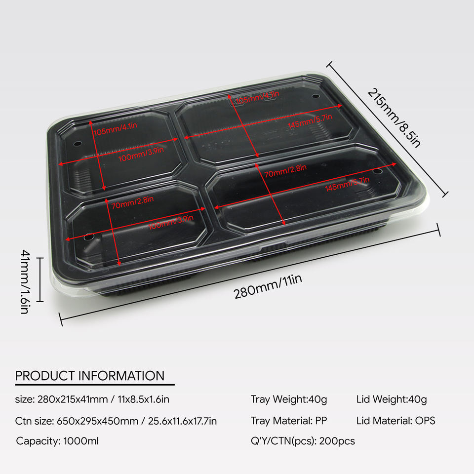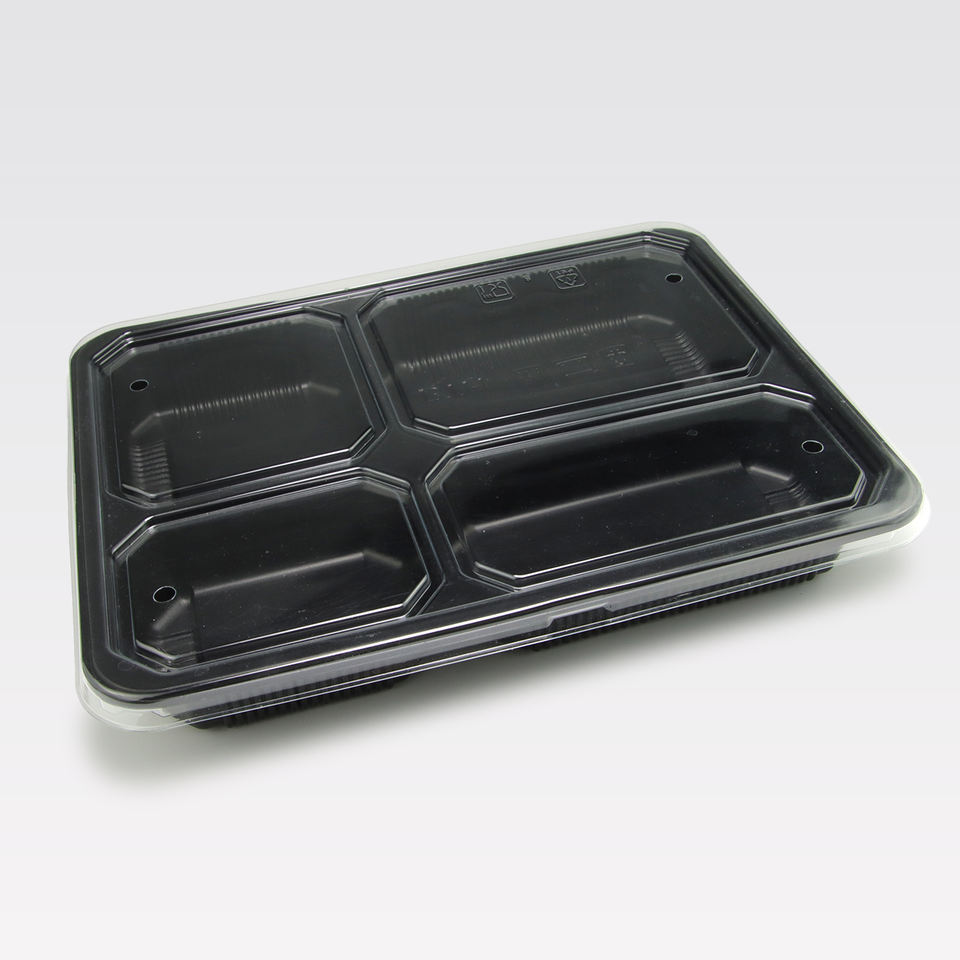 กล่องอาหารพลาสติก PP แบบใช้แล้วทิ้ง 4 ช่อง สีดำ สำหรับอาหารแบบนำกลับบ้าน ขายดีที่สุด