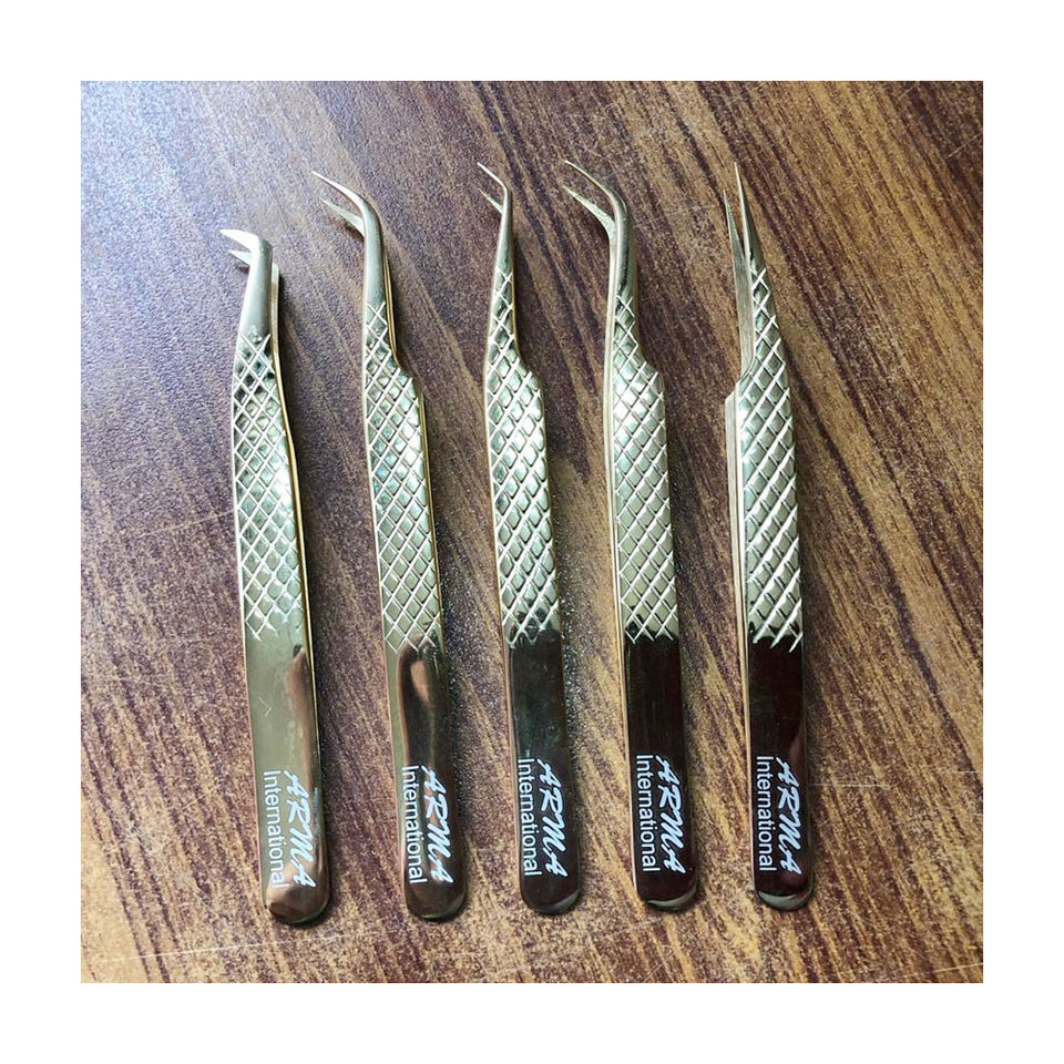 Best Selling Plasma Gold Fiber Tip Eyelash Extension Tweezers Sustainable Stainless Steel Hand Tested Private Label