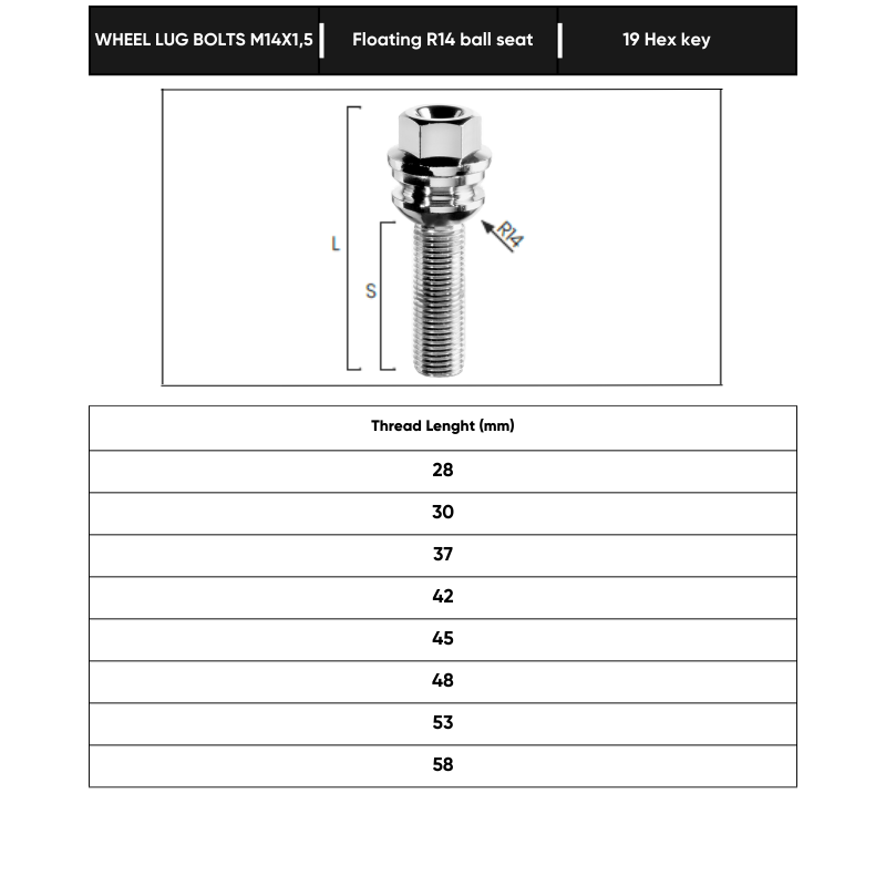 สลักเกลียวล้อพอร์เชอร์แบบลอยตัวสำหรับใช้เปลี่ยนหรือซ่อมได้19ปุ่ม M14X1.50หกเหลี่ยม/37มม. S19D37-MW