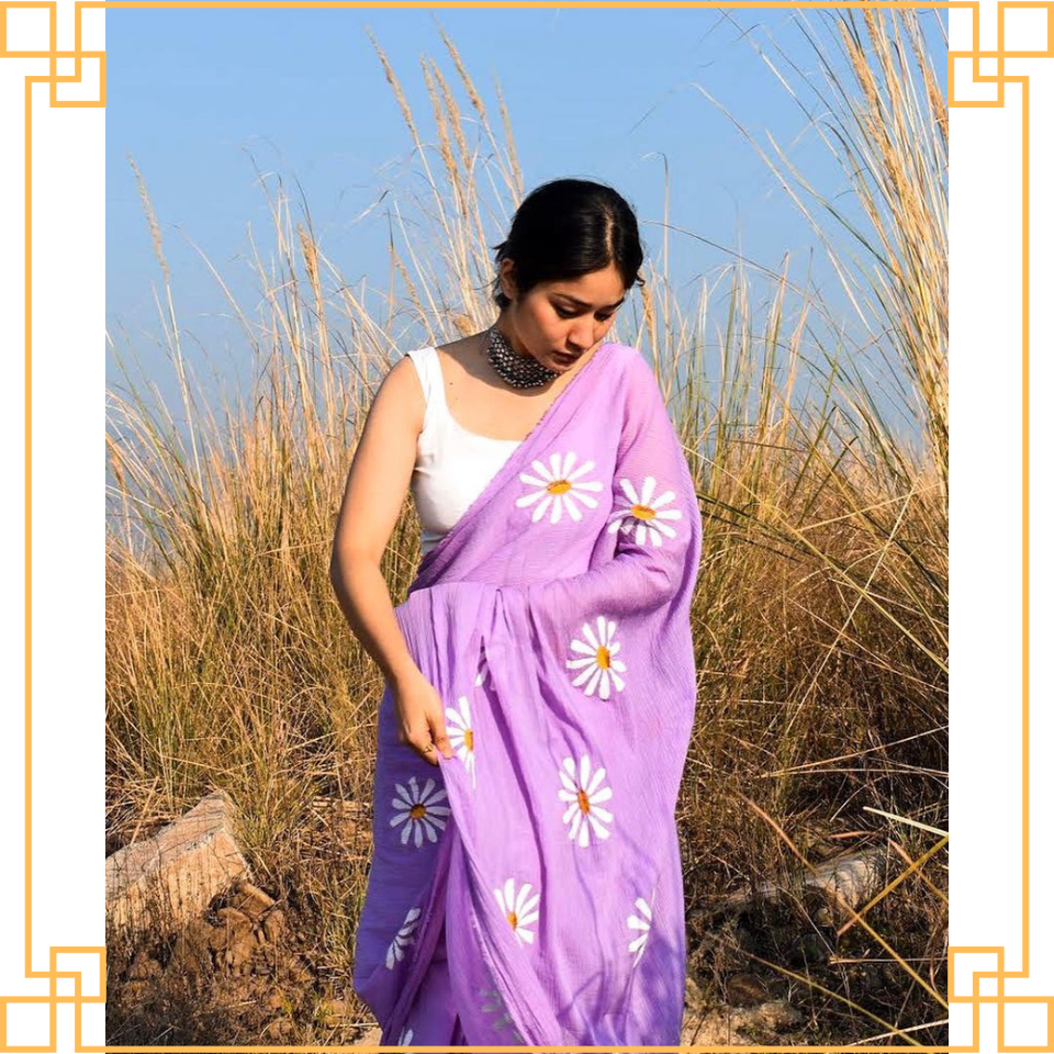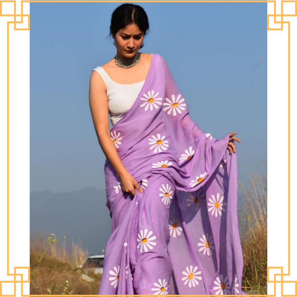 ผ้าส่าหรีปักลายดอกไม้สุดหรูผ้าส่าหรีแบบอินเดียคุณภาพสูงสำหรับผู้ใหญ่