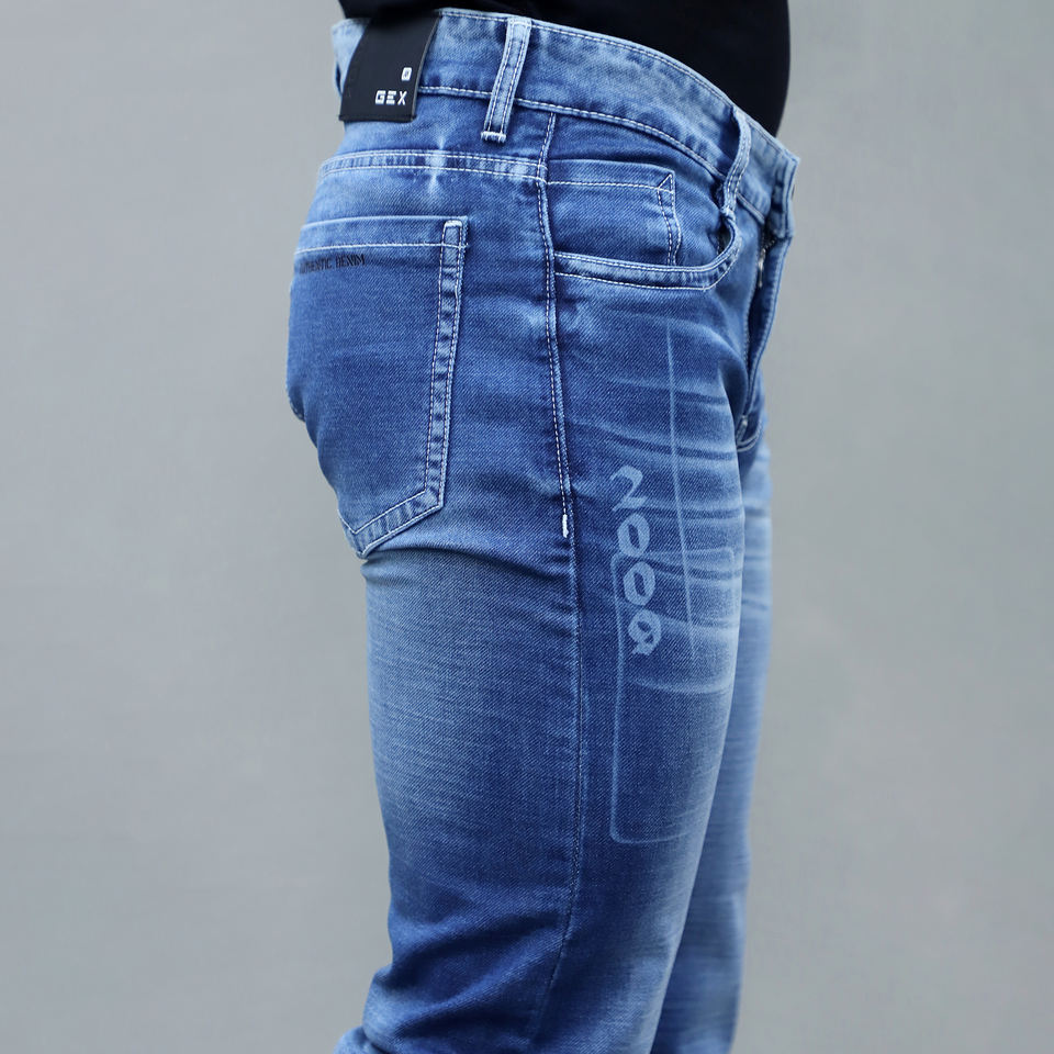กางเกงยีนส์สีฟ้าอ่อนทรงปกติเอวกลางยืดได้ คุณภาพพรีเมียมขายดีสำหรับผู้ชาย ยี่ห้อ Gex