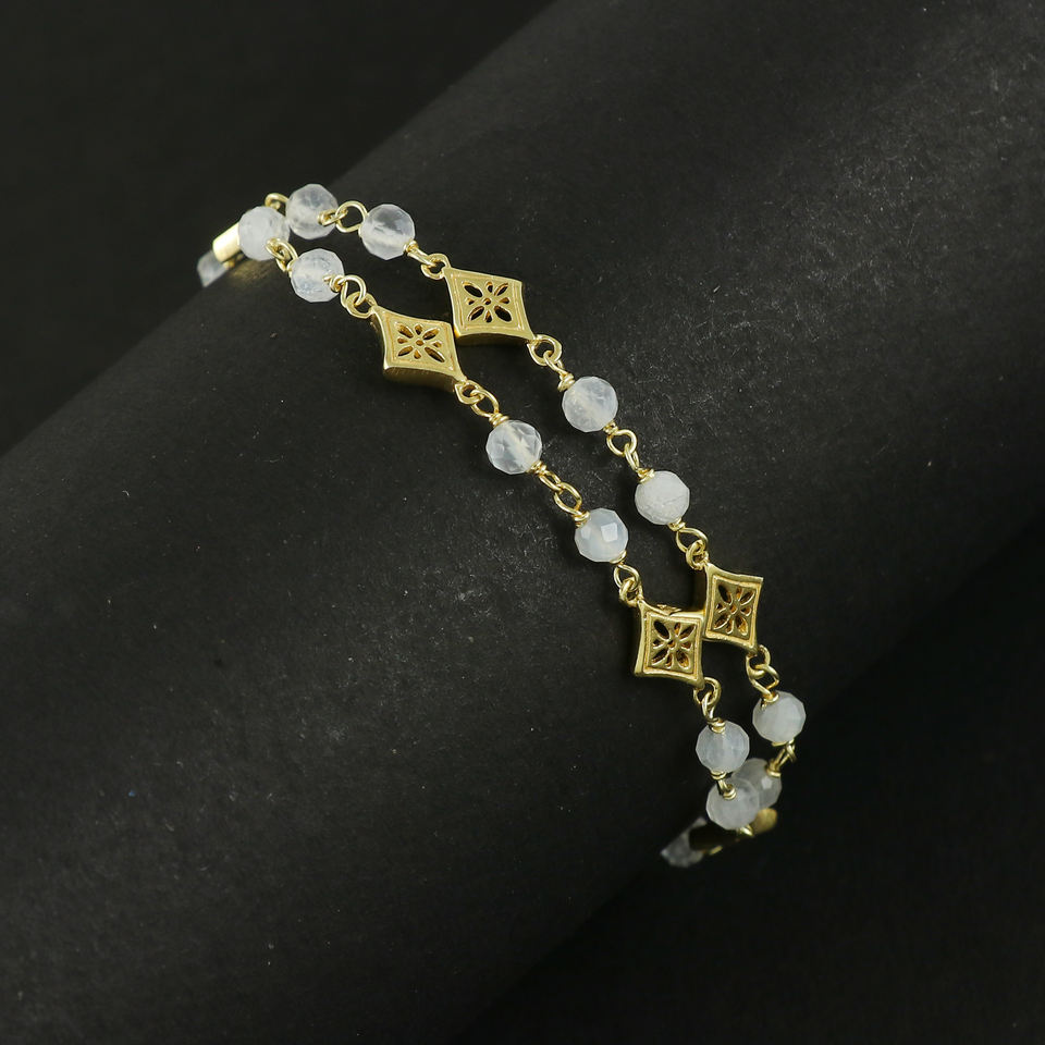 สร้อยข้อมือเงินแท้ 925 ชุบทอง ประดับมูนสโตนสีรุ้ง สินค้าขายดี สร้อยข้อมือแฟชั่นสำหรับสาวๆ