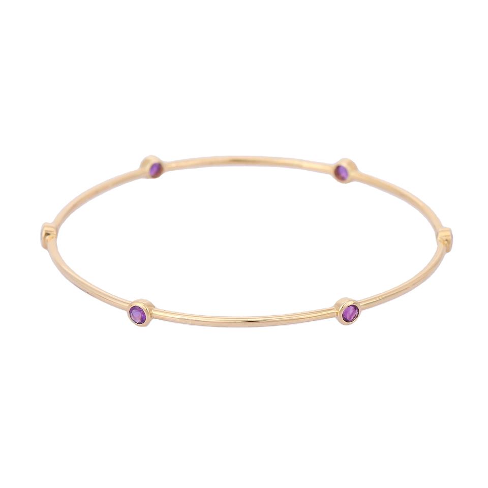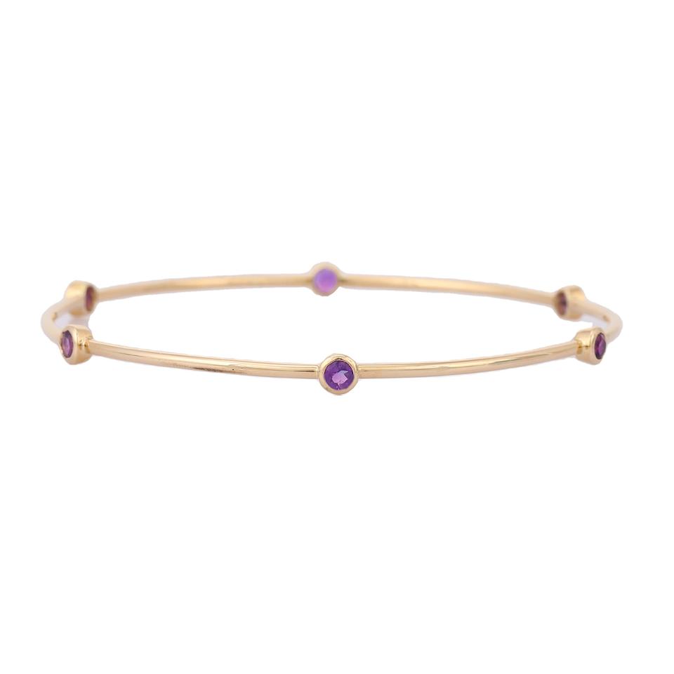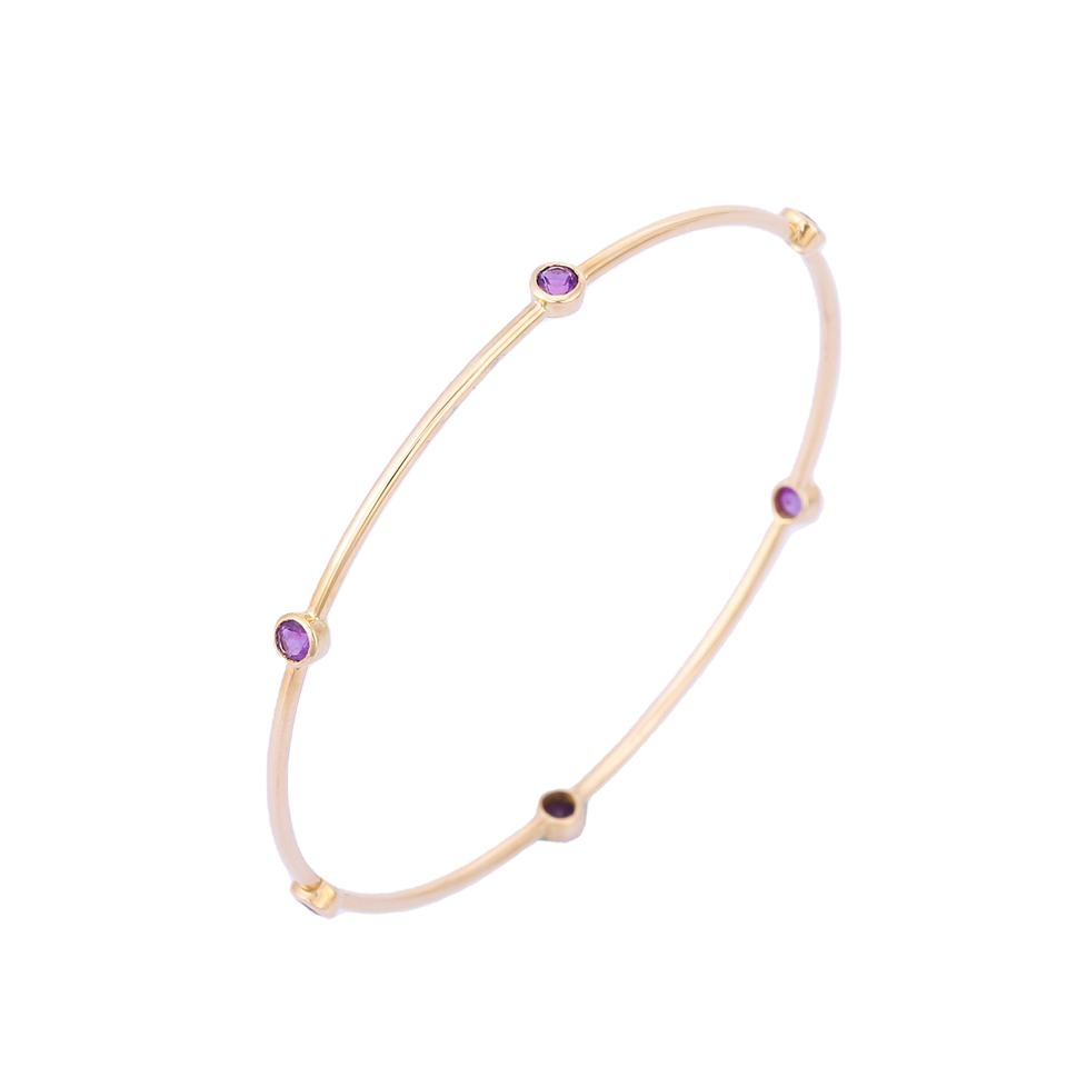กำไลทองสีเหลืองเข้ม18K พร้อมพลอยอเมทิสต์ทรงกลมตามธรรมชาติของขวัญแต่งงานสำหรับแขก