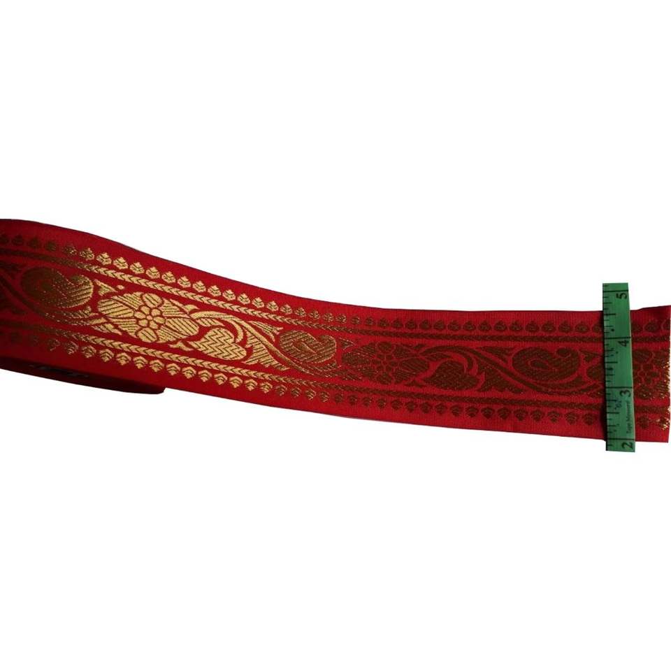 ริบบิ้นไนลอนผ้าแจ็คการ์ดวินเทจผ้าไหมสีทองและสีเงินขนาด50มม. ออกแบบได้ตามต้องการ
